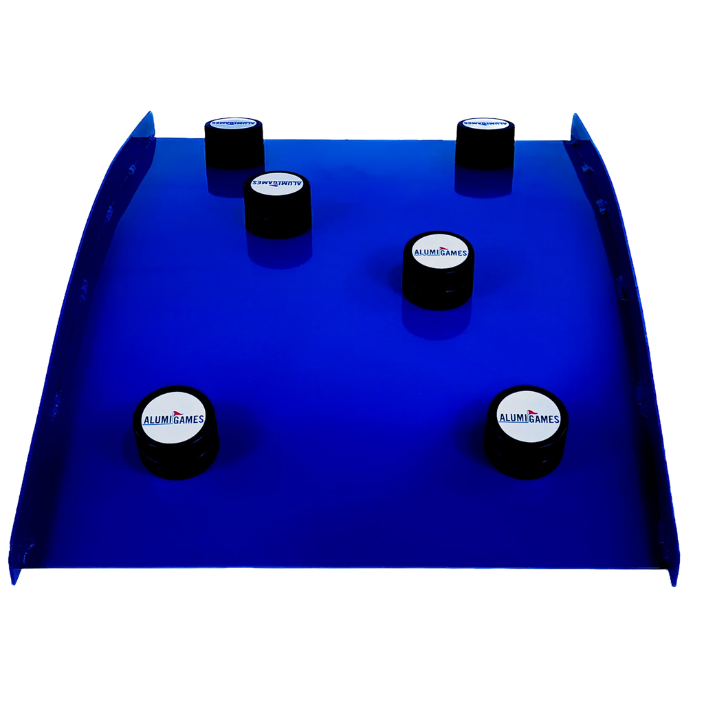 The challenge? Navigate your shot up the angled ramp, past the strategically placed pucks and sink it into the target hole. Every bounce counts, a perfect mix of luck and geometry.