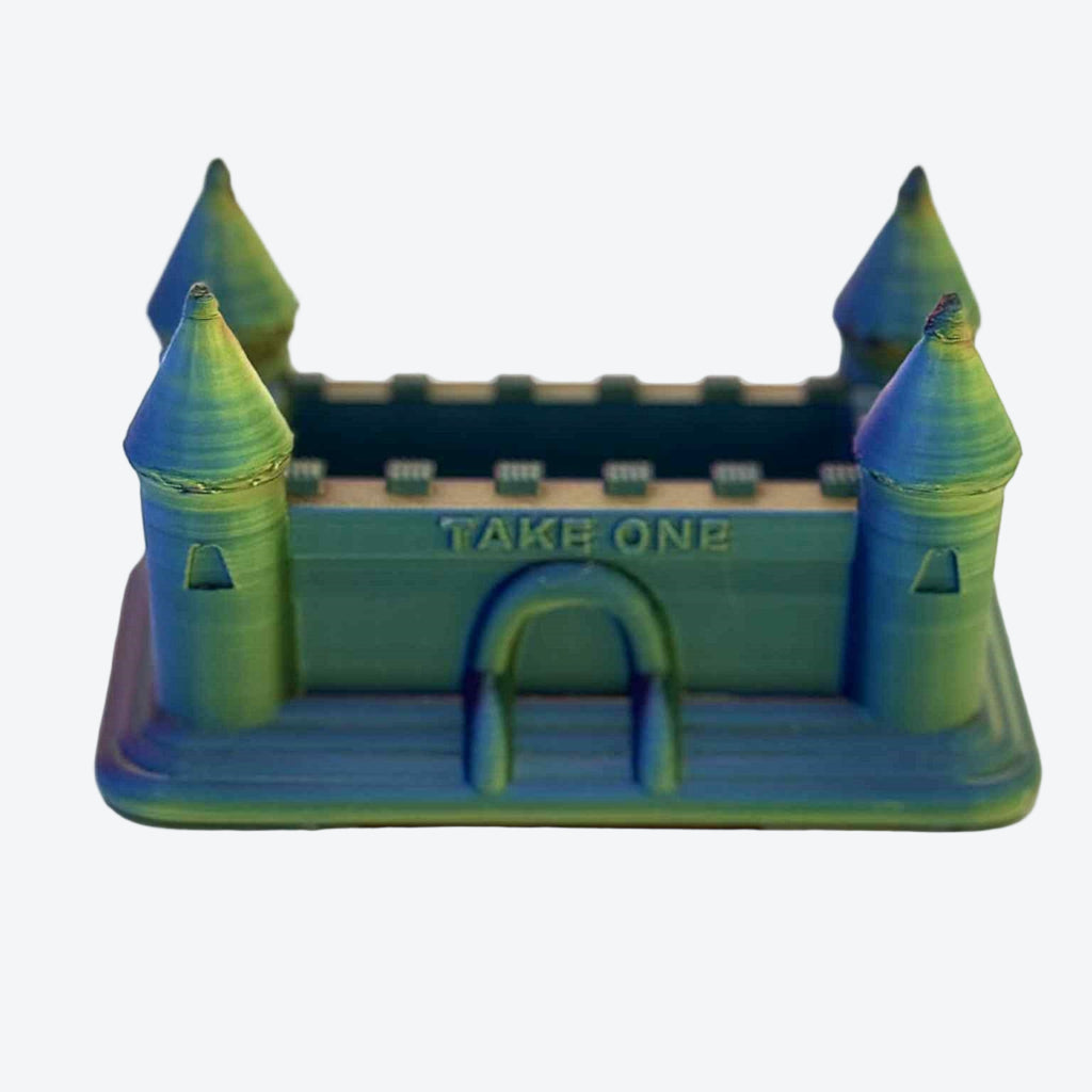 Keep your business cards organized and easily accessible with this colorful Bounce House Business Card Holder. Its vibrant design adds a playful touch to your office desk or event booth, making it a memorable conversation starter. Ideal for professionals seeking a unique way to showcase their cards while subtly promoting their brand. Durable and eye-catching, it combines functionality with creative flair to enhance your networking efforts.