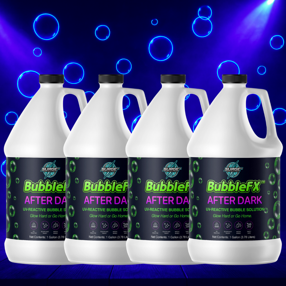 Light up the night with BubbleFX™ After Dark, the ultimate UV-reactive bubble solution designed to electrify your events. Specially formulated for blacklight environments, this premium solution produces vibrant, glowing bubbles that shimmer under UV light—perfect for glow parties, nightclubs, festivals, haunted attractions, or anywhere the dark comes to life.