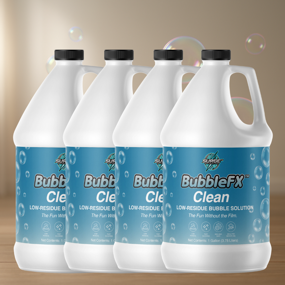 Designed for venues that demand high performance without the mess, BubbleFX™ Clean delivers a crisp, high-output bubble experience with minimal residue and no sticky buildup. Perfect for indoor spaces, dance floors, rentals, and equipment you want to protect, Clean leaves behind virtually no film — making cleanup a breeze.