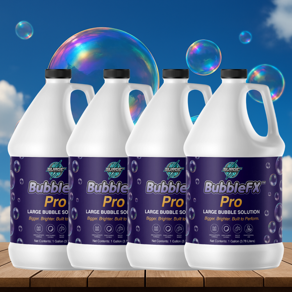 Crafted for performance in both standard and high-output bubble machines, BubbleFX Pro is your top-tier choice when bubble size, visibility, and wow-factor matter most. Whether you're creating immersive party zones or entertaining large crowds, this formula brings bubble performance to the next level.