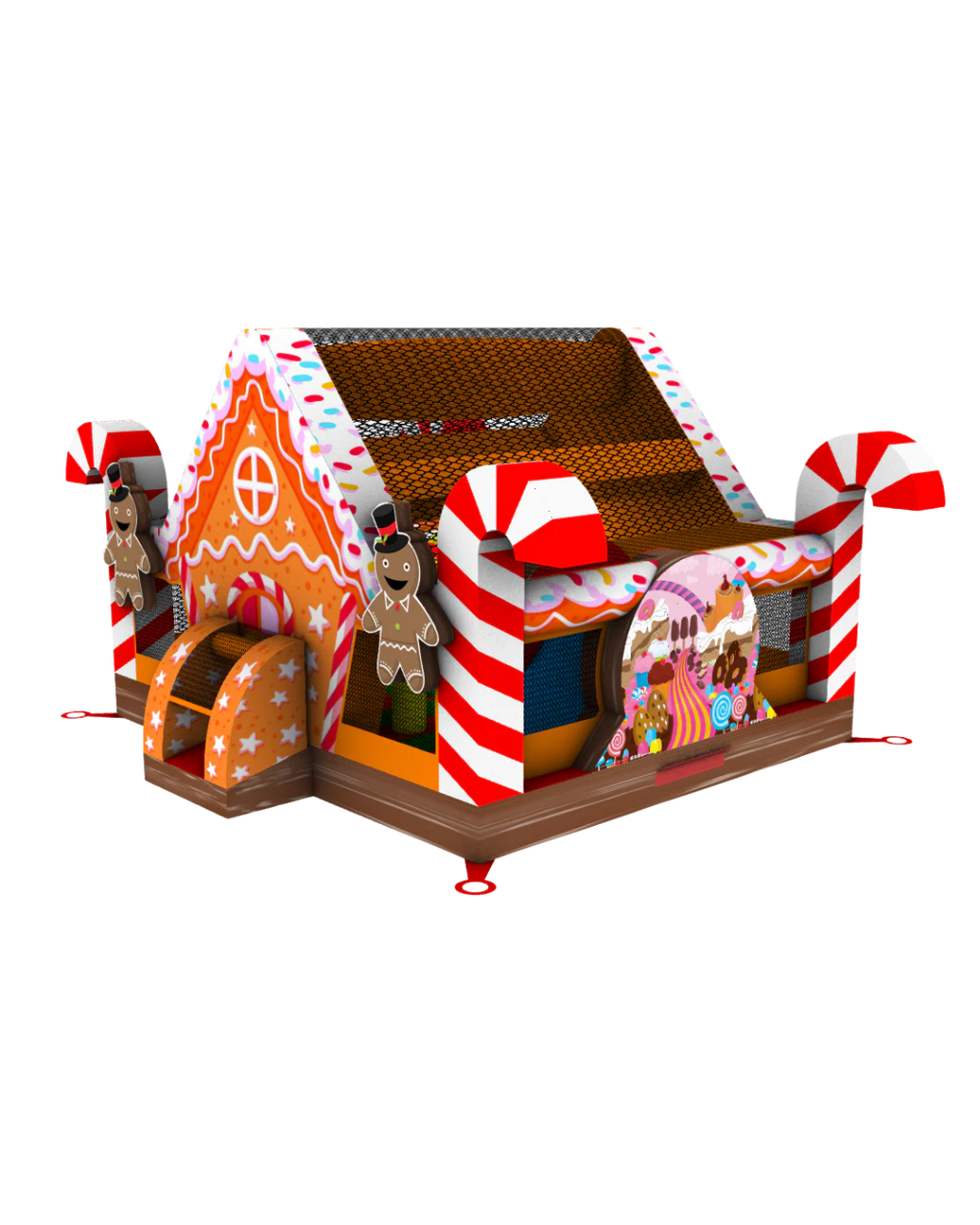 Looking for the ultimate holiday party addition? Our Gingerbread Playground is an inflatable wonderland, perfect for your rental business. Bring the festive fun with this whimsical gingerbread house, guaranteed to be a hit at your next event.