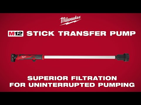 Milwaukee M12 stick transfer pump delivers superior filtration for uninterrupted pumping in catch basins, water meter boxes, trenches, sump pump pits, and more. Featuring a 36 in. submersible aluminum barrel, this transfer pump provides the extension needed to reach water at the bottom of trenches and difficult to reach areas. Equipped with HYDRO PASS filter technology, its 360° filter maximizes flow in heavy debris, minimizing downtime caused by clogging. Powered by the M12 battery platform, this water transfer pump eliminates repetitive manual pumping and improves control, requiring only one hand to pump, freeing the other to control the outflow. With a 15 ft. maximum head height and an outlet compatible with a standard 3/4 in. garden hose, this pump delivers the power to push water farther out of pits and basins, over walls, and to the ideal deposit location.