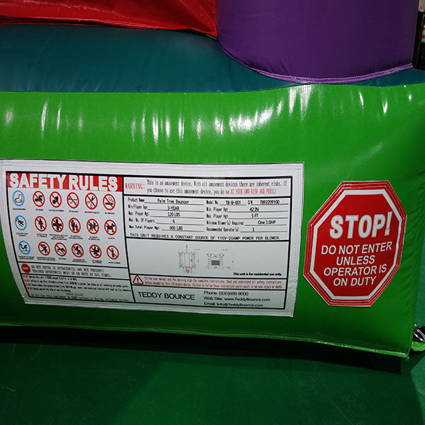 Safety: All Eagle Bounce inflatable games are manufactured to be safe and durable. Our inflatable are FIRE RETARDANT and LEAD FREE. Safety step is standard for all our bouncers and combos. Anti-Jumping safety netting on all our slides to prevent player’s unsafe behavior. Anchors and safety strips included in all inflatable games. Warning sign and other safety signs sewn at the entrance.