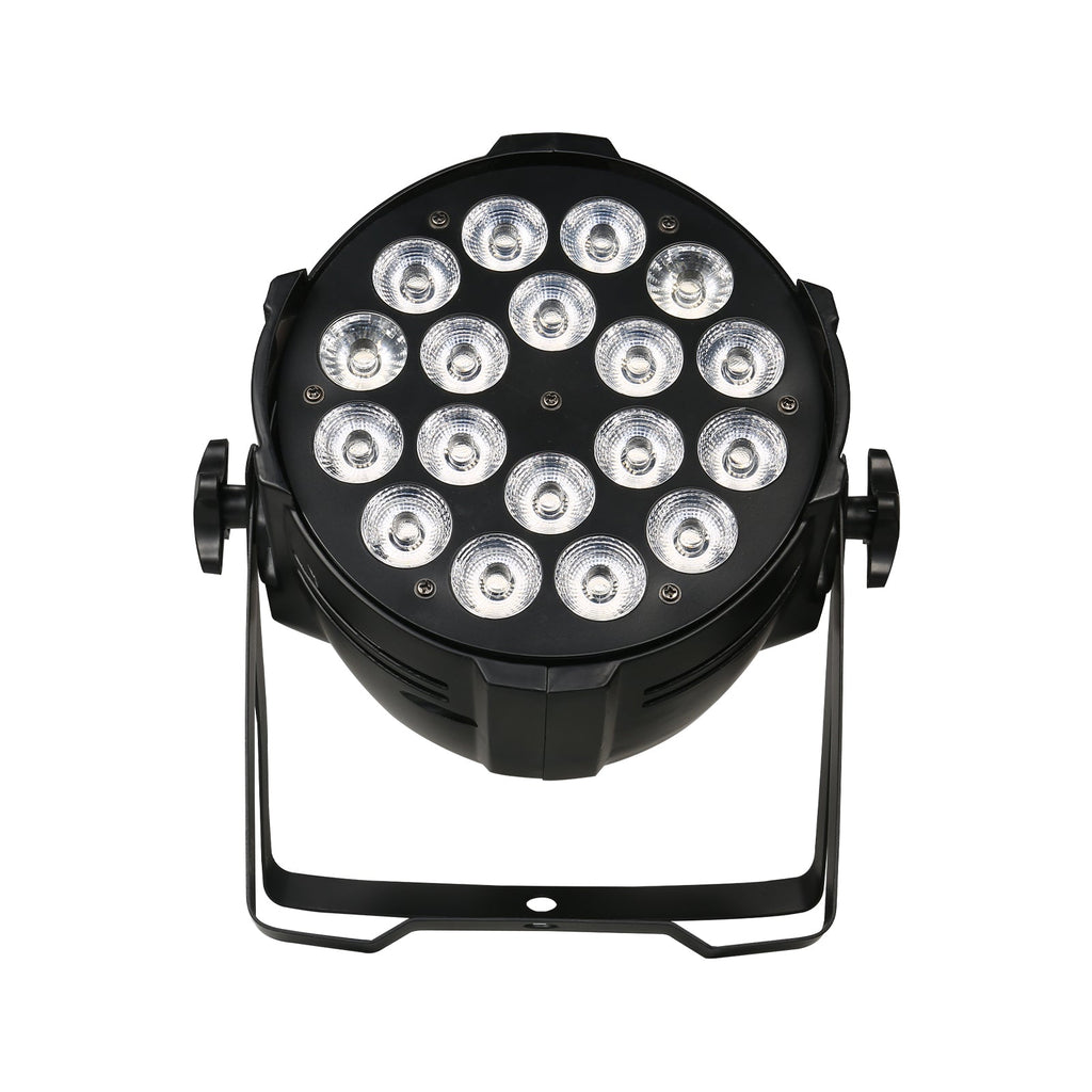 - 18x10W RGB 4/5/6-in-1 LEDs: Provides vibrant, customizable color mixing for professional events.