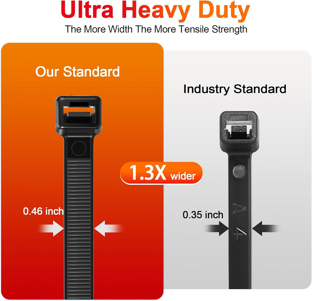 Our ties have a tensile strength of 400 lbs. which is higher than other products. With a width of 0.5 inches and a thickness of 0.095 inches, our ties are stronger and more durable than the industry standard. You can use our cable tie without worrying about them breaking.